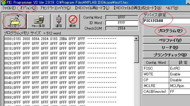 PIC開発元であるMPLABで売ってるんですが3万位します。これならMPLAB上で転送できそうなんですが今回は秋月で購入したライターを使いました。(6,500くらい))
